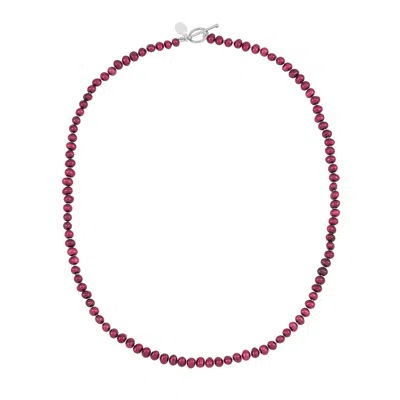 Women's Red Petite Berry Pearl Necklace In Sterling Silver