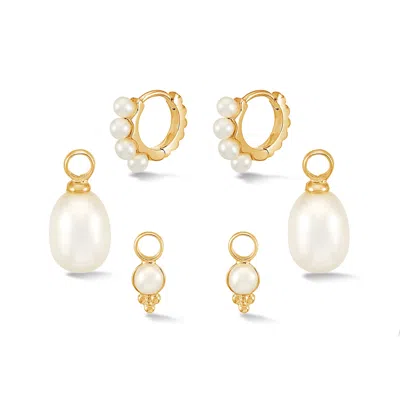 Women's Gold Timeless Pearl Hoops Set In Vermeil