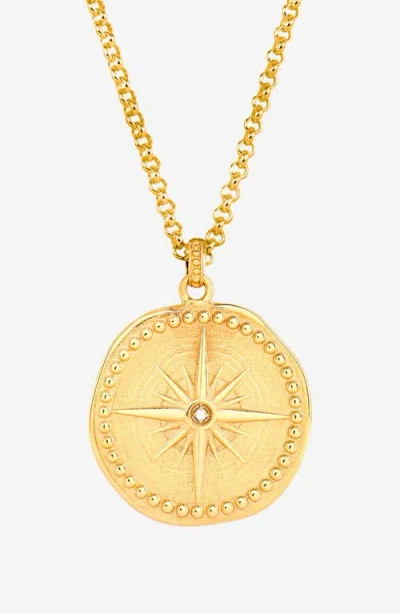 Men's Solid White Gold Diamond True North Tiny Talisman Necklace In Metallic