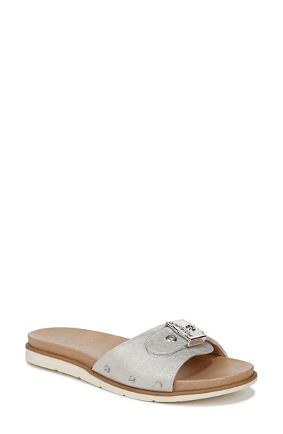 Nice Iconic Slide Sandal In Metallic Silver Faux Leather