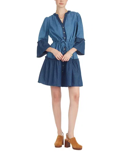 Chambray Ruffle Shift Dress In Dark Wash In Blue