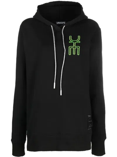 Logo-embroidered Cotton Hoodie In Black