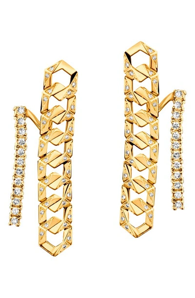 Flow Graduated Diamond Chain Drop Earrings In Yellow Gold