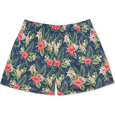 Organic Cotton Oahu Hawaiian Print Boxer Short In Oahunavy