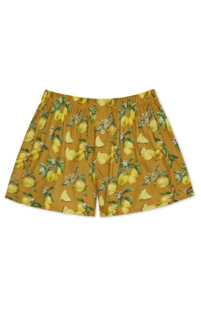Organic Cotton Watercolor Lemons Boxer Short In Mustard