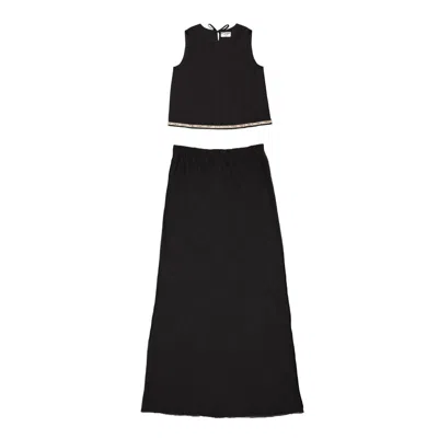 Black Boho Linen Top & Skirt Set