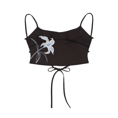 Women's Black Lily On The Rock Embroidery Top