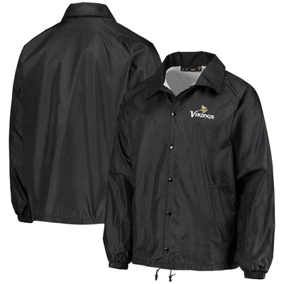 Men's Black Minnesota Vikings Coaches Classic Raglan Full-snap Windbreaker Jacket
