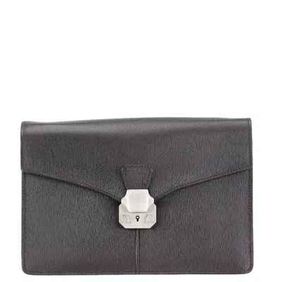 Pre-owned Dark Brown Navy Leather Clutch Bag ()