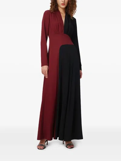 Two-tone Gathered Dress In Black