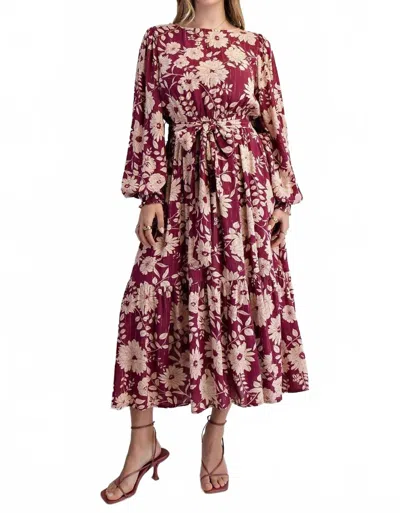 Floral Printed Mirabelle Satin Maxi Dress In Eggplant In Red