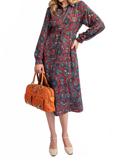 Floral Printed Shirt Dress With Spaghetti Belt In Red Bean In Multi