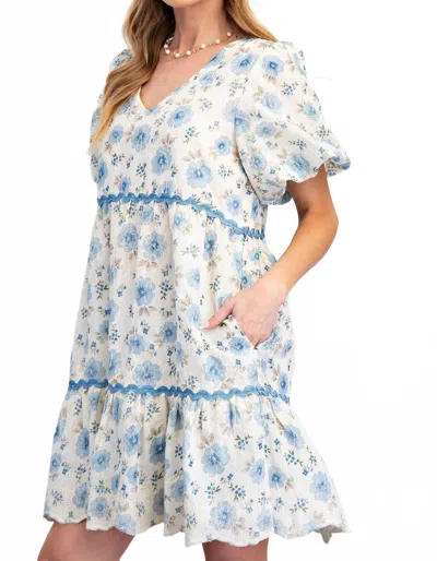 Short Sleeve Poly Linen Maxi Kaftan Dress In Denim In Blue