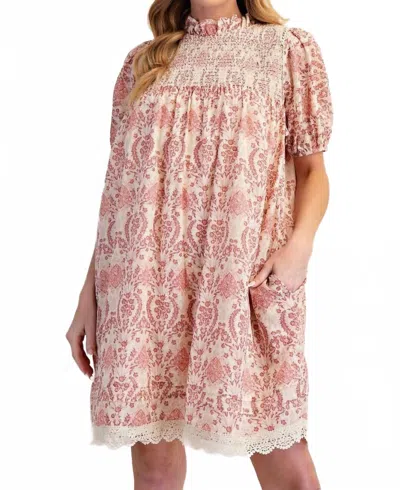 Printed Cotton Voile Crochet Lace Hem Woven Dress In Boho Red In Pink
