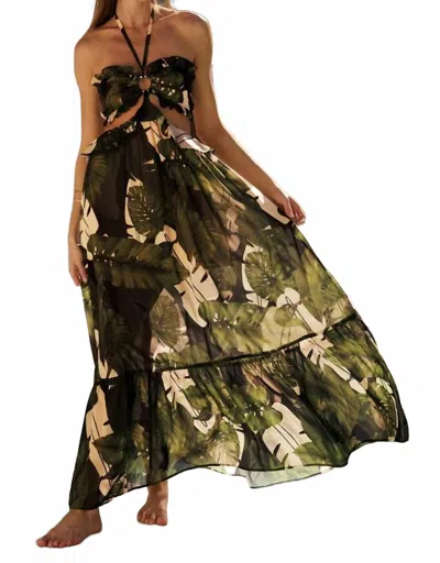 Tropical Palm Halter Maxi Dress In Green/ Black Multi