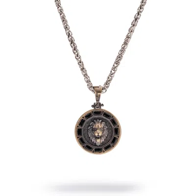 Men's Regal Lion Medallion Men's Sterling Silver Necklace - Silver In Metallic
