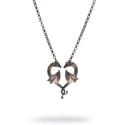 Men's Twin Dragon Heart Men's Sterling Silver Necklace - Silver In Metallic