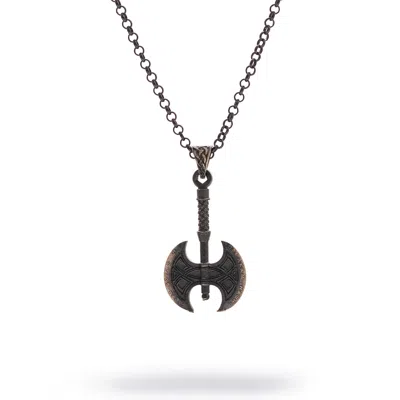 Men's Viking Axe Men's Sterling Silver Necklace - Silver In Black