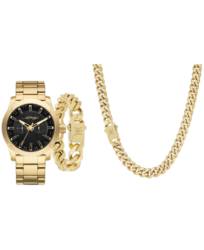 Men's Shiny Gold-tone Metal Bracelet Watch 46mm Gift Set In Matte Black,shiny Gold-tone
