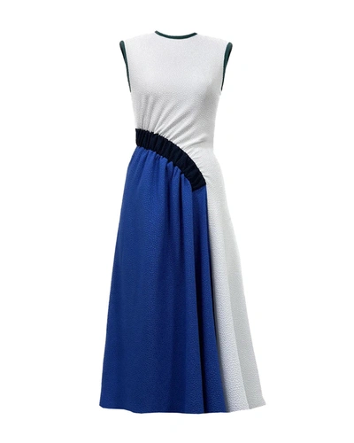 Women's Pina Ruched Textured-jacquard Midi Dress In Cerulean/slate/navy