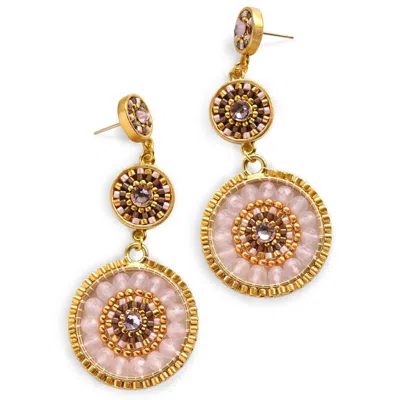 Women's Blue / Pink Striped Medallion Drop Earrings - Cotinga In Multi