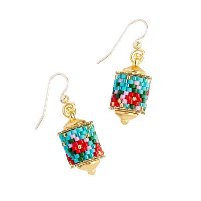 Women's Red / Blue Striped Medallion Drop Earrings - Scarlet In Multi
