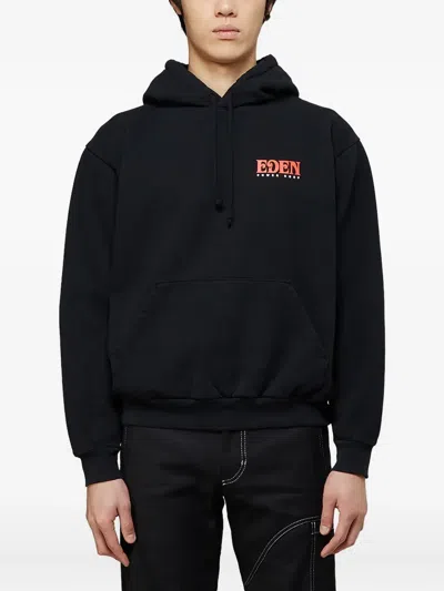 Reclycled Cotton Sweatshirt With Hood And Back Print In Black