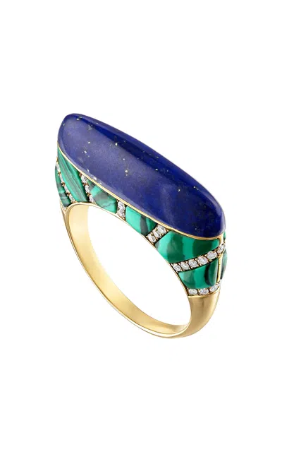 In Pieces 4k Yellow Gold Diamond Ring In Blue