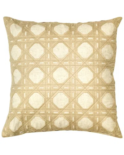 Indoor/outdoor Rattan Geometric Decorative Pillow In Khaki
