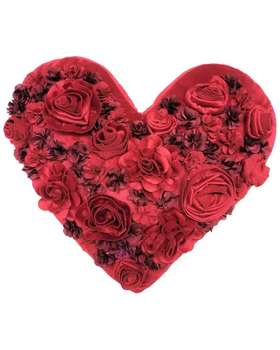 Edie@home Velvet Floral Heart Shaped Dimensional Decorative Throw Pillow In Red