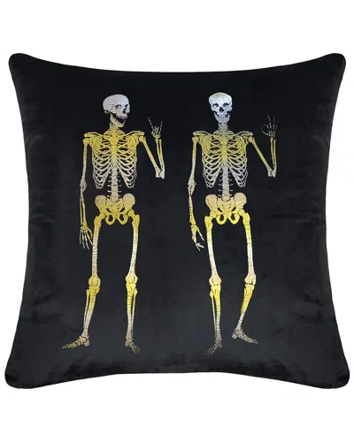 Edie@home Velvet Halloween Rocker Skeletons Decorative Pillow In Black