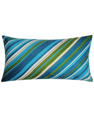 Indoor/outdoor Ombre Bias Crewel Embroidered Stripe Decorative Pillow In Blue