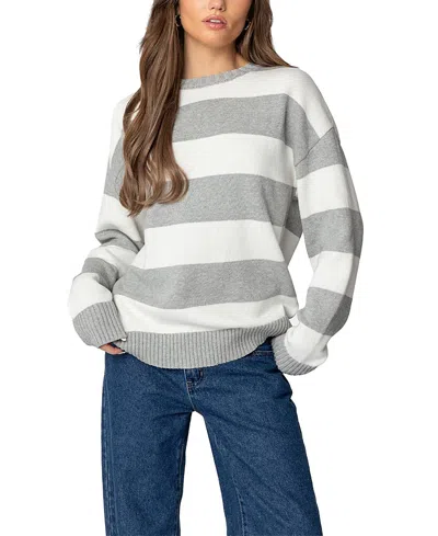 Richie Oversize Stripe Cotton Crewneck Sweater In Gray-melange