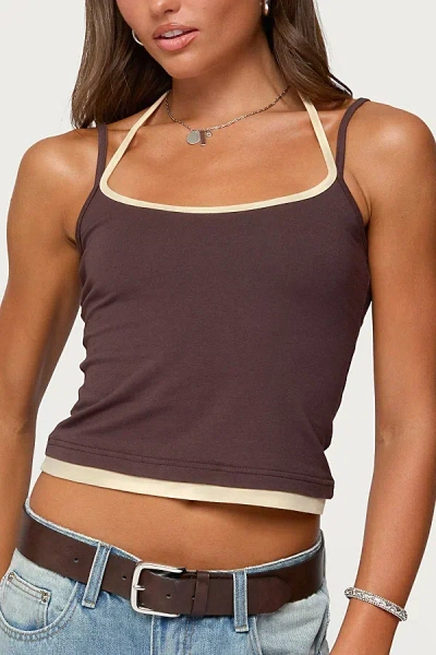 Adriel Contrast Lace Trim Camisole In Brown