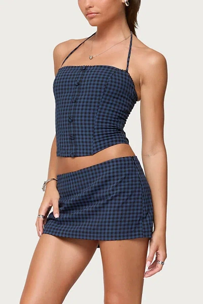 Ziggie Tie Front Denim Mini Skort In Dark/blue, Women's At Urban Outfitters
