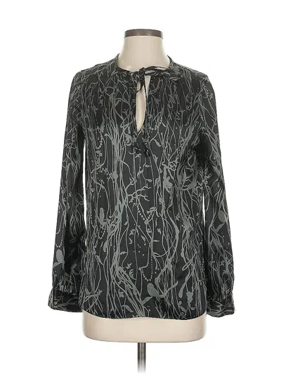 Pre-owned Long Sleeve Silk Top Black Keyhole Neckline Tops