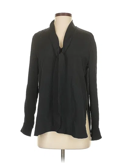 Pre-owned Long Sleeve Silk Top Black Tie Neck Tops