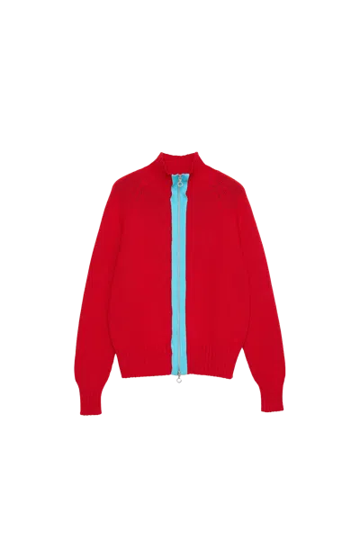 Intarsia Vertical Stripe Sweater In Red/ Pink/ Crem/ Bro