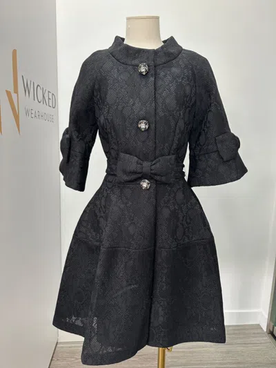Pre-owned Cc1 Achour Paris Black Lace Dress Coat Jacket Crystal Buttons Sz 34