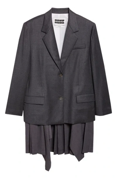 Transformable Single Breasted Wool Blend Blazer In Gray
