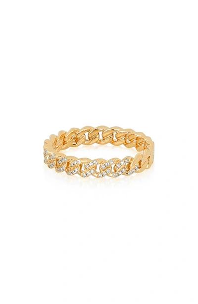 Women's 14k Yellow Gold & Diamond Pavé Mini Curb Chain Ring