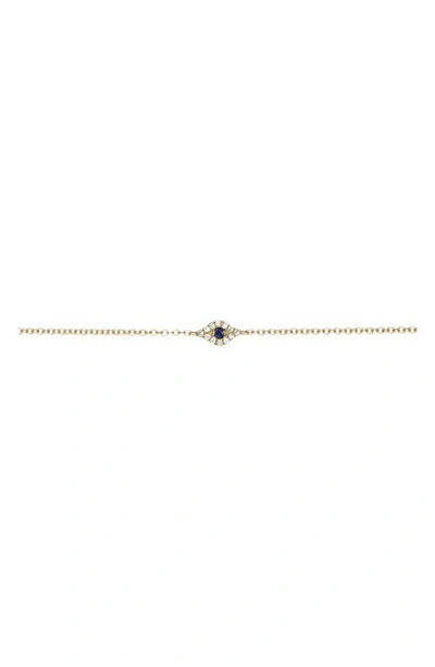 14k Yellow Gold Blue Sapphire & Diamond Evil Eye Link Bracelet