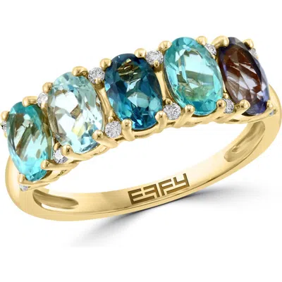 14k Yellow Gold Semiprecious Stone & Diamond Ring In Blue