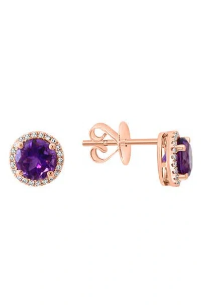 14k Rose Gold Diamond & Cushion Cut Amethyst Ring In Purple