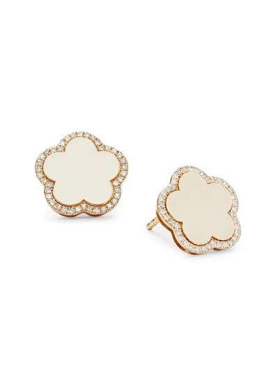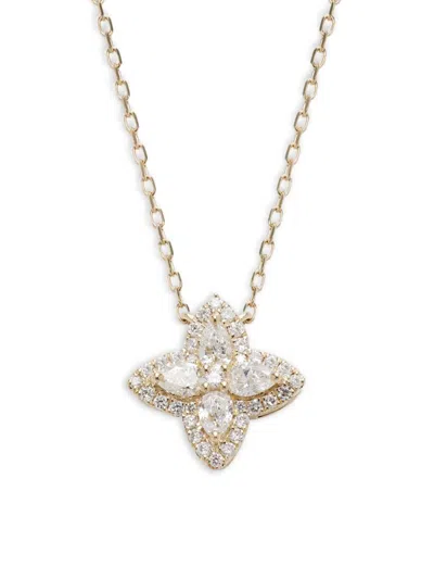 Women's 14k Yellow Gold, Mother Of Pearl & Diamond Clover Pendant Necklace