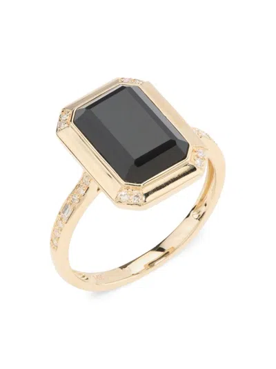 Women's Onyx & Diamond 14k Yellow Gold Ring In Yellow Gold Black