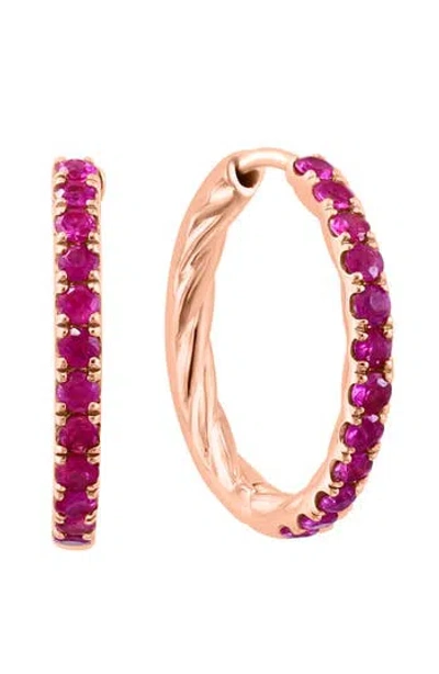 14k Rose Gold Plated Ruby Huggie Hoop Earrings