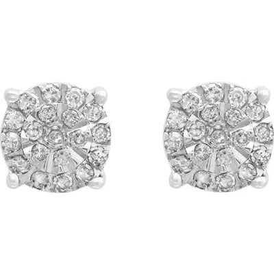 Sterling Silver Pavé Diamond Round Stud Earrings