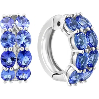 Sterling Silver Tanzanite Huggie Hoop Earrings In Blue