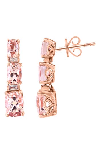 14k Rose Gold Morganite & Diamond Drop Earrings In Pink